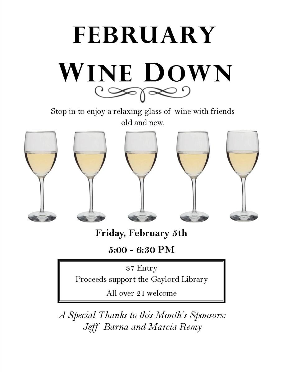 Feb 2016 Wine Down Published January 22, 2016 at 1275 × 1650 in Gaylord Memorial Library ← Previous Next → Join us during our February Wine Down! Like Loading...