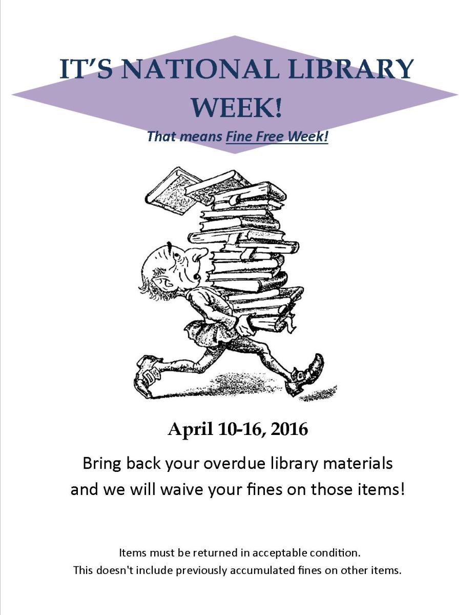 Fine Free Week 2016 Published March 31, 2016 at 1275 × 1650 in Gaylord Memorial Library ← Previous Next → Fine Free Week Like Loading...