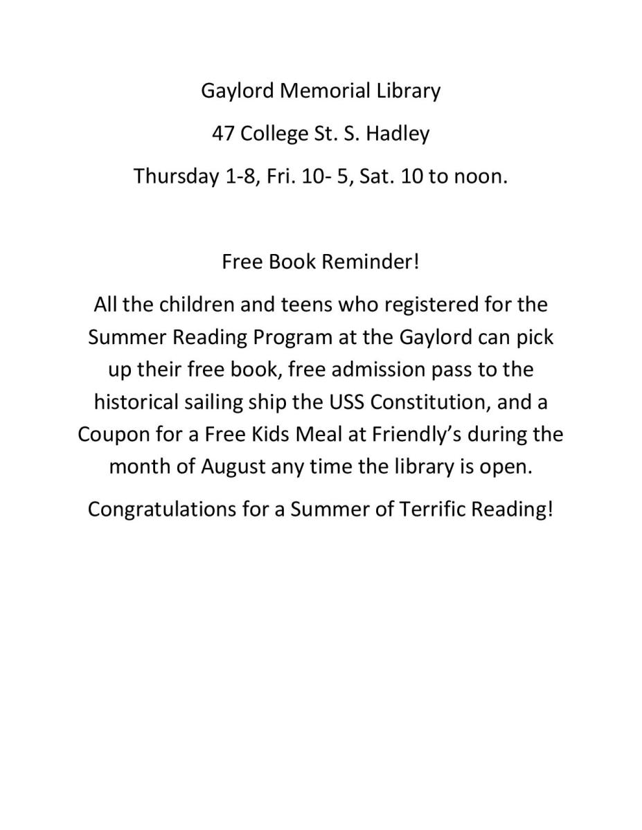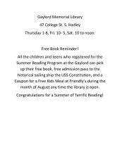 free book reminder-page-001 Published August 8, 2015 at 1275 × 1650 in Gaylord Memorial Library ← Previous Next → Like Loading...